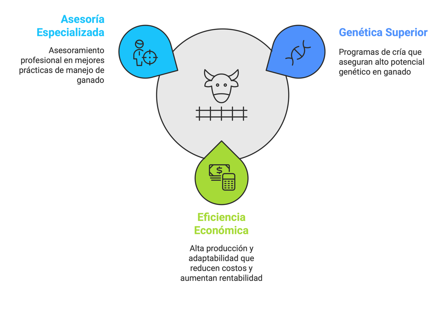 Asesoría especializada: Ofrecemos acompañamiento profesional para implementar las mejores prácticas en manejo y reproducción de su hato.
