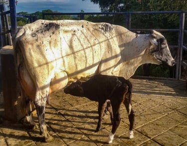 Alta producción lechera: Las vacas Gyrolando Plus tienen una producción promedio de 15 a 20 litros en su primer parto, incrementándose a 25 litros diarios en partos subsecuentes, con dos ordeños al día.